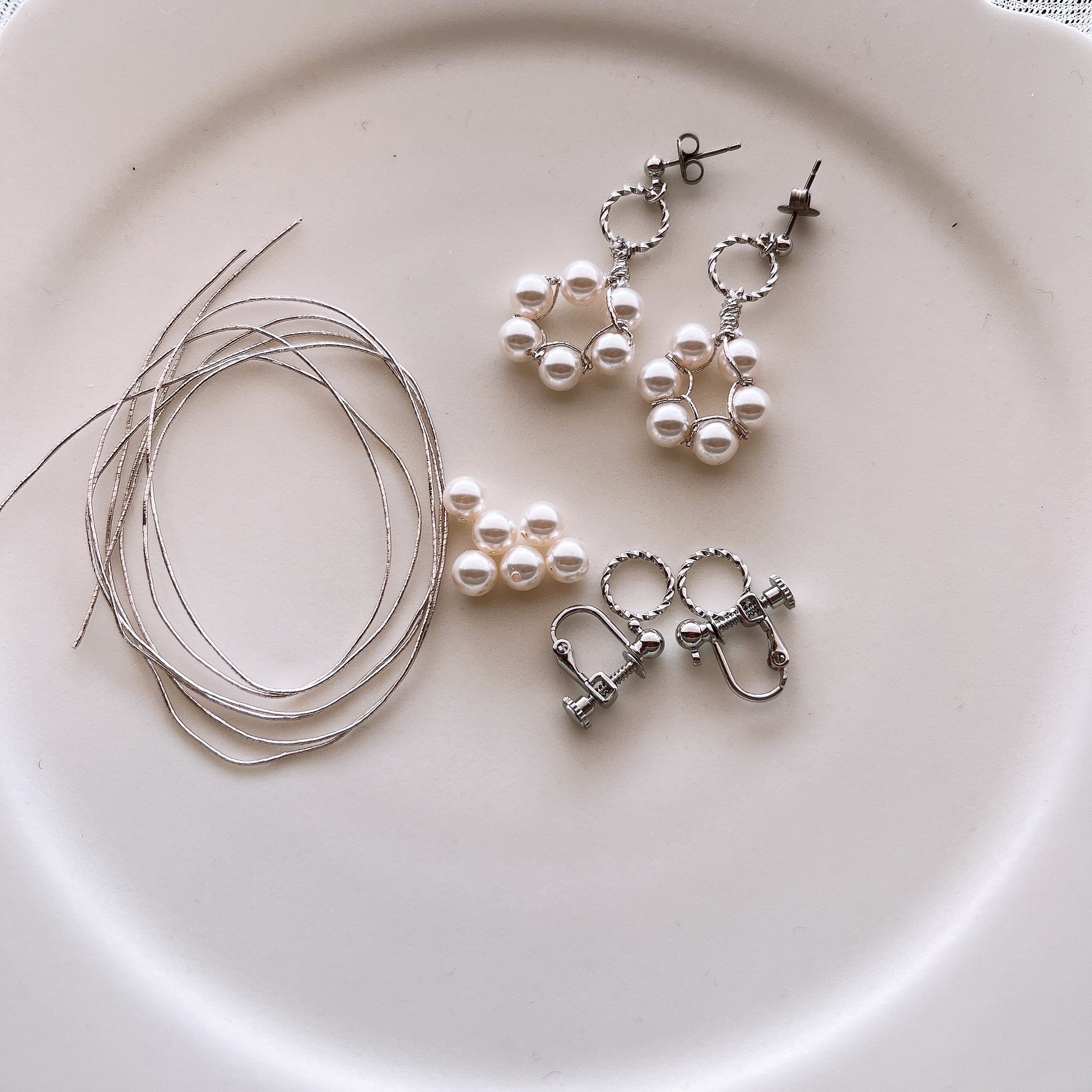 高見えするパールと金属風の糸で、サクッとおしゃれなアクセサリーが完成します